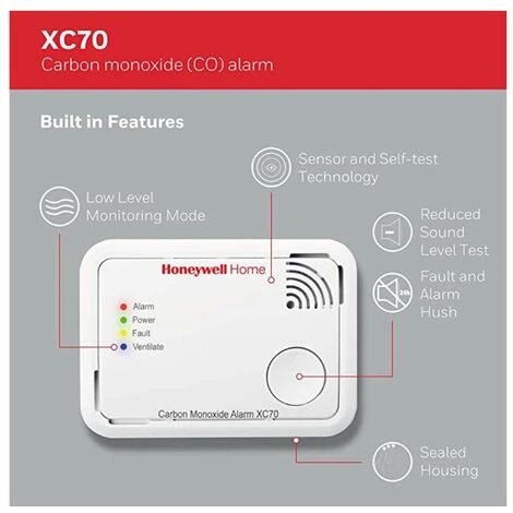 Un détecteur de CO compact de Honeywell Home, avec une très longue durée de vie.