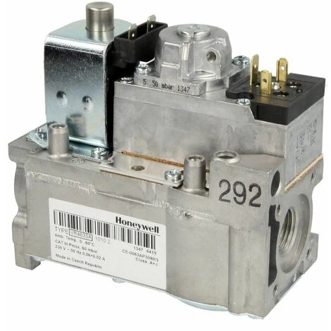 Bloc gaz Honeywell VR4635A1010Vannes gaz combinées pour systèmes à allumage automatiques ont deux vannes électriques en série. Les blocs gaz sont utilisés pour la régulation et la surveillance de la flamme d’allumage et/ou de la flamme principale des brûleurs à gaz atmosphériques dans des appareils de chauffage. Les vannes gaz combinées sont prévues pour être utilisées avec les gaz de ville et naturels (1ère et 2ème familles de gaz) et approuvées aux normes européennes.- raccord: 1/2 »- 240 V, 50 Hz