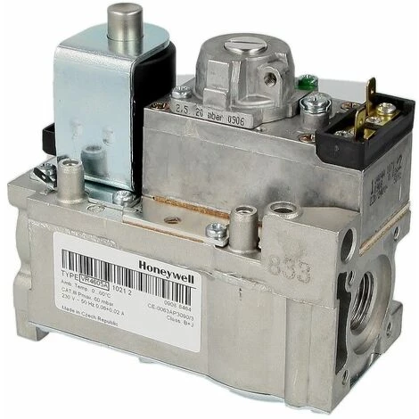 Bloc gaz Honeywell VR4605A1021Vannes gaz combinées pour systèmes à allumage automatiques ont deux vannes électriques en série. Les blocs gaz sont utilisés pour la régulation et la surveillance de la flamme d’allumage et/ou de la flamme principale des brûleurs à gaz atmosphériques dans des appareils de chauffage. Les vannes gaz combinées sont prévues pour être utilisées avec les gaz de ville et naturels (1ère et 2ème familles de gaz) et approuvées aux normes européennes.Caractéristiques techniques:- raccord: R 1/2″- 230 V/50 Hz- ouverture rapide- classe B/RM- 100 mbar PE- régulateur de pression: 2,5…20 mbar.Livré sans capuchonPour p.ex. Brötje