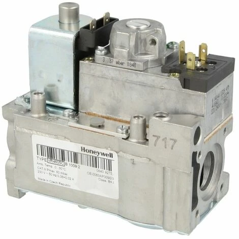 Bloc gaz Honeywell VR4605CB1009 pour Elco KL-GS 22 NOX-A.Vannes gaz combinées pour systèmes à allumage automatiques ont deux vannes électriques en série. Les blocs gaz sont utilisés pour la régulation et la surveillance de la flamme d’allumage et/ou de la flamme principale des brûleurs à gaz atmosphériques dans des appareils de chauffage. Les vannes gaz combinées sont prévues pour être utilisées avec les gaz de ville et naturels (1ère et 2ème familles de gaz) et approuvées aux normes européennes.