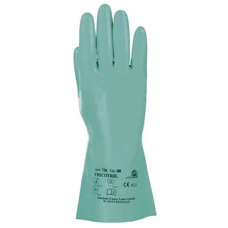selon EN 374 · cat. III · maillot coton sans coutures entièrement enduit de nitrile · bonne résistance aux sollicitations mécaniques · grande gamme d’applications, résistance chimique · bonne prise en main dans des pièces graisseuses et huileuses · neutre pour la peau grâce au collage sans solvant du maillot · inoffensivité alimentaire selon UE 1935/2004 · bonnes propriétés antistatiques et électrostatiques · tricot collé en jersey pour un maximum d’étanchéité · Application : pétrochimie, industrie chimique, travaux de galvanisation, travaux de nettoyage et de maintenance dans des usines chimiques, manipulation de pièces lourdes contaminées